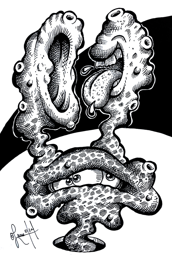 In addition to being a compulsive doodler, I’m an Art Director for a new software start-up, PRIMAL MATH. We make math learning apps for children. We just released our first game, Zombie Fish Bits, into the Apple app store, but because we are small and operating on limited budgets, we’ve started a KICKSTARTER campaign so that we can fund a port our game to Android mobile devices, bringing Zombie Fish Bits to a larger audience of young learners. I’m really proud of our first game and the artwork and animation I created for it, and my art is also being used for the contributor swag! 🙂