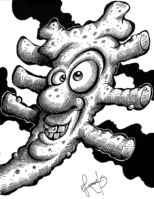 art, artist, artwork, black ink, cartoon, cartoon art, cartoon illustration, cartooning, cartoonist, cartoons, comic books, comic strips, comicbooks, comics, concept art, draw, drawing, illustration, illustrator, ink, pen, sketch, sketchbookInstead of skin lotion, Rib Head Fred uses BBQ sauce to keep his skin moist….and delicious.